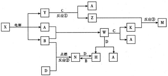 );X、Y、Z、M、N、W、H、K是常见化合物,M为白色沉淀,它们之间有如下转化关系(图中反应物和生成物中的H2O已略去)回答下列问题: