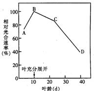 (4)若该绿色植物为多年生草本植物,幼叶成折叠状。右图为该植物相对光合速率(%)与叶龄的关系。请据图回答:(每空2分)