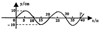20.如图是一列简谐横波t=0时刻的一部分波动图象,波沿x轴正方向传播,波速v=20 m/s.则t=1.25 s时刻,图中横坐标为40 m的P质点所在处的位置坐标为