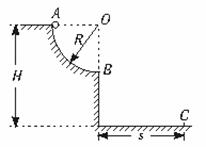 23.(16分)如图所示,位于竖直平面上的1/4圆弧光滑轨道,半径为R,OB沿竖直方向,上端A距地面高度为H,质量为m的小球从A点由静止释放,最后落在水平地面上C点处,不计空气阻力,求: