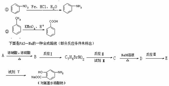 (2)据报道,目前我国结核病的发病率有抬头的趋势。拟制结核杆菌的药物除雷米封外,PAS-Na(对氨基水杨酸钠)也是其中的一种。它与雷米封可同时服,可以产生协同作用。已知: