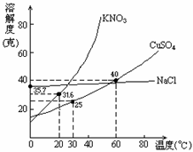 D.30℃时,将35克硝酸钾和35克食盐同时溶于100克水中,蒸发时,先析出的是氯化钠