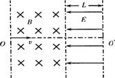 (17分)如图所示,有界匀强磁场宽度为L=0.2m、磁感应强度B=2×10-3T;磁场右边宽度也为L=0.2m、场强E=40V/m、方向向左的匀强电场.一带电粒子电荷量q=-3.2×10-19C,质量m=6.4×10-27Kg,以v=4×104m/s的速度沿OO’垂直射人磁场,在磁场中偏转后进人右侧的电场,最后从电场右边界射出.求: