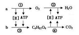Ⅱ.(10分)下图表示绿色植物叶肉细胞内发生的光合作用和有氧呼吸的过程,图中a、b为光合作用的原料,①-④表示相关过程,据图回答: