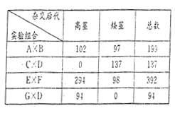 (3)科学家用A,B,C,D,E,F,G7种豌豆进行杂交实验[高茎(D)对矮茎(d)为显性],结果如右表: