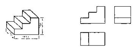 b.根据立体图所给尺寸,在三视图中标注出木梯对应的长、宽、高尺寸。