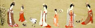 12.《簪花仕女图》是古代画家周肪的著名画作,下列选项与画中人物所在年代及妇女服饰所用材料搭配正确的是