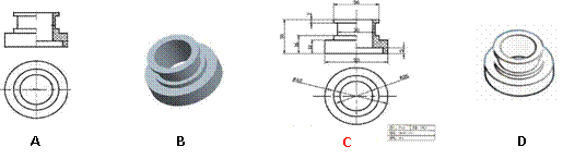 17、工作人员完成了一个零件的设计,并绘制了各种图样,下图中符合机械加工图要求的是( )