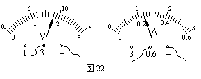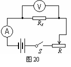 (2)小明将电路改接正确后,合上开关,调节变阻器的滑片到某位置时,电压表和电流表的指示如图22所示,则电压表的读数是 V,电流表的读数是 A,被测电阻Rx的阻值是 Ω.