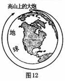 (05芜湖课改区)牛顿曾研究过这样一个问题:他发现人掷出去的石头总会偏离掷出方向落回地面,于是牛顿提出了一个“大炮”的设想,图12 是他画的“大炮”草图--在地球的一座高山上架起一只水平大炮,以不同的速度将炮弹平射出去,射出速度越大,炮弹落地点就离山脚越远。他推想:当射出速度足够大时,炮弹将会如何运动呢?牛顿通过科学的推理得出了一个重要的结论。这就是著名的“牛顿大炮”的故事,故事中牛顿实际也用到了理想实验的研究方法。