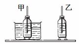 ?为此小明用两个相同的牛奶瓶,都装入热牛奶,一个放在温度与室温相同的水中,另一个就放在空气中,为了尽量减少其他因素的影响,他把两个瓶都用木块垫起来,放在同一个桌面上.如图所示.实验时他每隔一定的时间记录一次甲、乙两温度计的示数,得到的数据如下表: