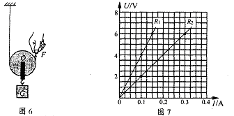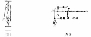 二○○六年福州市如图7所示,拉力F将物体匀速提升1m,已知物体重21N,动滑轮重3N(不计摩擦及绳重),则F =____ N,