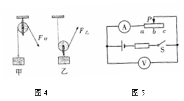 重庆市2006如图4所示,用定滑轮和动滑轮分别将质量相同的甲、乙两物体匀速提升相同的高度, 不计绳重与摩擦,且动滑轮重G动小于乙物体的物重G,则所用的拉力F甲 F乙, 其机械效率η甲 η乙(两空均选填“>”、“<”或“:”).