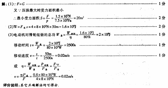 (3)若使用电动机通过滑轮组移动古建筑,已知电动机对滑轮组做功的功率为80kW,滑轮组的机械效率为80%,古建筑移动的速度是多大?