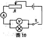 22.(2006年太原市) (6分)为测量一只标有"6.3V 0.3A"的小灯泡的额定功率,某实验小组设计了图10的电路图.现有实验器材为:电压表(量程0-3V,0-15V)一块。电流表(量程0-0.6A,0-3A)一块,“10Ω2A"和"50Ω1A"的滑动变阻器各一只,电源(电压恒为12V)一个,开关一只,导线若干.实验时,甲同学认为电压表和电流表都应选用小量程,滑动变阻器应选用"50Ω1A"的;乙同学认为电压表应选用大量程,电流表应选用小量程,滑动变阻器应选用“10Ω 2A"的.