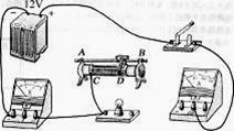 (2)只有一盏灯接入电路时,应是L1或L2与滑动变阻器串联,电路的总功率决定于电源电压和电流(电流表的示数)。电路中的总电阻