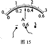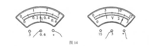 (2)若按该同学所连接的电路进行实验,结果两表的示数如图14(已知电影电压为6V),则电流表的示数为____________A,电压表的示数为____________V;测得小灯泡的实际功率为_________W。
