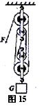 29. 一个工人用如图15所示的滑轮组匀速提升2000N的货物,所用拉力为 600N,绳子自由端被拉下4m。求: (1)此滑轮组的机械效率多大? (2)你认为此滑轮组的机械效率与哪些因素有关? |
