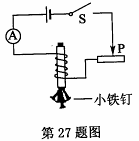 (2006年衢州市)如图所示,是研究“通电螺线管周围磁场强弱”的实验电路图。
