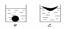29.(05沈阳市(课改区))如图所示,将两块相同的橡皮泥做成实心球形和碗形,分别放入相同的甲、乙两杯水中,静止时甲杯中橡皮泥所受的浮力___________乙杯中橡皮泥所受的浮力(选填"大于"、"小于"或"等于"),________杯中水面升高得多。
