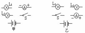 (2)乙图中L1和L2两灯并联,开关控制L1,电流表测干路中的电流.