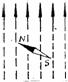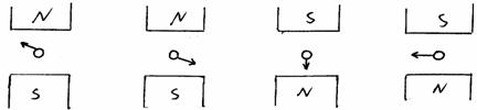 例2:(1998广州中考)下图中箭头表示磁感线的方向,则小磁针静止时N极的指向应( )