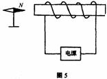 例5:(2000广州中考)实验室有一台旧的直流电源,输出端的符号模糊不清,无法分辨正负极,小明设计了判断电源两极的方法:在桌面上放上一个小磁针,在小磁针东面放一个螺线管,如图所示,闭合开关S后,小磁针指南的一端向东偏转,下述判断正确的是( )