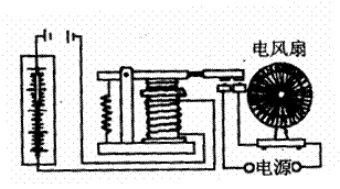 例11:如图所示,是工厂里一种自动降温风扇的简单电路示意图。图中水银温度计里封入一段金属丝,当温度达到金属丝下端时,电风扇就会自动转起来。结合电路示意图,试说明它的工作原理: