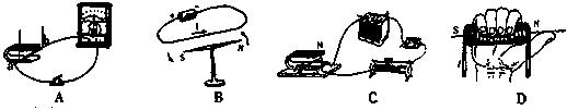 例14:电动机是一种高效率、低污染的动力设备,下面四幅实验装置图中,对电动机有直接影响的是( )