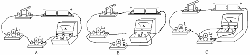 1.小丽同学进行探究实验的电路如图所示,她用电流表分别在A、B、C三处测得电流如下表。请帮她完成如下几项工作: