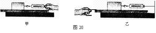 (3)许多同学指出了该实验操作方法存在不足,于是进行了如下改进:用弹簧测力计拉住木块,并使弹簧测力计固定不动,用力拉动木板(如图20乙). 若长木板匀速运动,木块和长木板之间的滑动摩擦力_______测力计示数;若长木板加速运动,则木块和长木板之间的滑动摩擦力_______测力计读数。(选填“大于”、“等于”或“小于”).请说出改进后的操作方法有哪些优点.(请写出其中的一点)