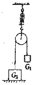 10.如图所示,不计滑轮重,G1=100牛,G2=500牛,若弹簧秤的读数为F1,物体G2对地面的压力为F2,则: ( )