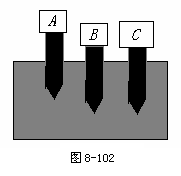 在探究物体的重力势能大小与哪些因素有关的实验中三个相同的木桩被从空中静止释放的铁块撞击,陷入沙坑中的情况如图8-102所示.在此实验中,我们是通过观察什么来比较各铁块重力势能的大小?