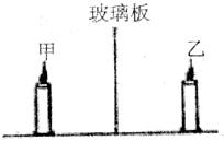 24.(7分)如下图所示,某小组用甲、乙两个相同的蜡烛、透明玻璃板、刻度尺等器材探究“平面镜成像的特点”。他们在实验中发现,无论怎样移动点燃的甲蜡烛,在玻璃板的另一侧都可以使乙蜡烛与甲蜡烛的像完全重合。他们进一步测量了两蜡烛到玻璃板之间的距离,记录数据如下表所示。