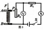 9.图3是童童设计的压力传感器的原理图,其中弹簧上端和滑动变阻器的滑片P固定在一起.AB间有可收缩的导线,R1为定值电阻.当闭合开关S.压力F增大时,电流表与电压表示数变化情况是