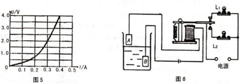 16.图6是一种水位自动报警器的原理图.当水位到达金属块A时,控制电路接通,这时电磁铁有_____________而吸引衔铁,灯泡_____________发光(选填“L1”或“L2”)