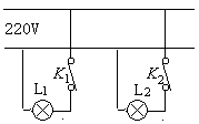 (2分)在图所示电路中,电源电压为220伏特,灯泡L1的电阻是120欧姆,灯泡L2的电阻是600欧姆。当K1、K2都闭合时,电路的总电阻等于________欧姆,干路里的电流强度等于____安培。