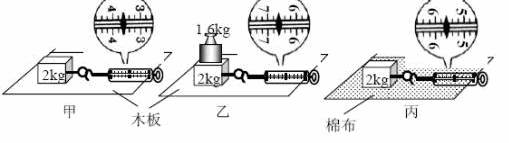 2.在进行“摩擦力的大小与什么因素有关?”的实验中,三次实验情况分别如图甲、乙、丙所示。(g取10N/kg)