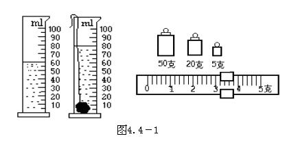 (2)如图4.4-1所示是以上A、B、C三步的测量情况,请将测量的数据填入下表中,并求出密度。
