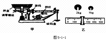 4、如图5.1-1所示,甲为商店里使用的台秤,其工作原理与天平相同。现用该台秤称某物体的质量,通过在砝码盘中添加槽码,移动游码使秤杆平衡,所加的槽码和游码的位置如图乙所示,该物体的质量为 ㎏.若把该物体带到太空,它的质量将 (选择“变大”、“变小”或“不变”)。 5、在“用天平称物体质量”的实验中,张强同学用已调节好的天平在称物体质量时,通过增、减砝码后指针指在分度盘中线左边一点,这时应该( )