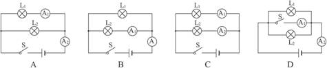 答案:断开把电流表分别接在a、b、c、d处,测得四处的电流分别为Ia、Ib、Ic、Id串联电路中的电流处处相等在读d点的电流时,误把0-0.6 A的量程看成0-3 A,结果把0.2 A读成了1 A