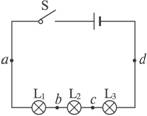 7.在探究串联电路的电流规律时,小敏同学连成了如图5-5-10所示的电路。在连接电路时,电键应____________;检查电路无误后,闭合开关,三灯L1、L2、L3均发光,接着她应____________;实验时,她记录了下表中的实验数据,由表1中的实验数据可知____________。