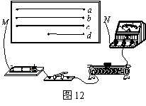 20(2分)小玲同学在探究“导体的电阻跟哪些因素有关”的问题时,选择了如图12所示的器材。演示板上固定了四根金属丝,a,b,c三条长度均为1m,d的长度为0.5m,a、b的横截面积相同,材料不同;a、c的材料相同,但c的横截面积大于a ;a、d的材料和横截面积都相同。该同学记录数据如下表。