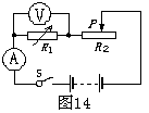 28.某同学按图14所示的电路研究通过导体的电流跟导体电阻的关系。电源电压保持不变,他不断改变电阻箱