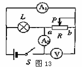 21.如图13所示,电源电压保持不变,闭合开关S,当滑动变阻器R的滑片P从中点向b端滑动的过程中( )
