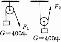 C.两次做功一样多 D.条件不够,无法比较两次做功的多少 4.两个滑轮完全相同,其重力均为20牛,分别用图14-21所示的两种方式 ,将重400牛的物体以相同的速度匀速提升了10米,不计摩擦和绳重,则下列判断正确的是( ) A. F1做的功大于F2 做的功 B. F1和F2 做的功相等 C. F1做功的功率小于F2 做功的功率 D. F1和F2 做功的功率相等 5.利用同一滑轮组,绳子以相同的方法承担同一物体,第一次在1min将物体升高 h,第二次在2min内将物体升高h,则下列叙述中正确的是( ) A. 加在绳端的力是第一次大 B. 机械效率是第一次大 C. 有用功率是第一次大 D. 绳端移动的距离是第一次大 6. 把重物提到楼上去,以下采用的方法,效率最高的是( ) A.直接用手提 B.用动滑轮 C.用定滑轮 D.用滑轮组 二、填空题 1..当你用水桶从井中提水的时候,你对桶所做的功是 ;如果桶掉进井里,从井里捞桶的时候,捞上的桶里带上一些水,这时你对水桶做的功是 . (选填“总功”、“有用功”或“额外功”)