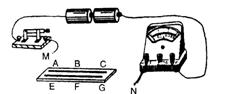 21.如下图所示,AC、EG分别为长度和粗细都相同的锰铜丝和镍铬合金丝,B、F分别为这两段电阻丝的中点,张明同学用该装置做“探究决定电阻大小的因素”实验,记录数据见下表:(7分)