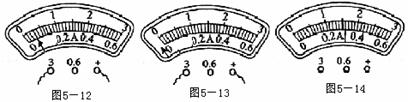 例8、某实验小组的几个成员做“用电流表测电流”的实验,小花把电流表串接在电路中,闭合开关,电流表的示数如图5-12,请你帮助她分析实验中存在的问题是______________________,小刚把电流表串接在电路中,闭合开关,电流表的示数如图5-13,请你帮助他分析实验中存在的问题是_______________________________________,他们认真学习了电流表使用方法后,将电流表正确接入电路中,电流表的示数如图5-14,这时电流表的读数是________mA.