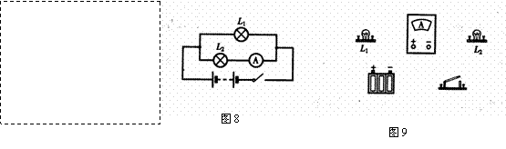 11.(1)根据电路图8,请用笔线把图9中的实物连成电路;