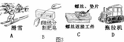 8、如图3展示了日常生活或生产技术中的四种情境,其中哪种情境运用了增大压强的知识 ( )